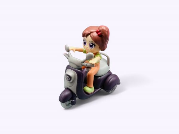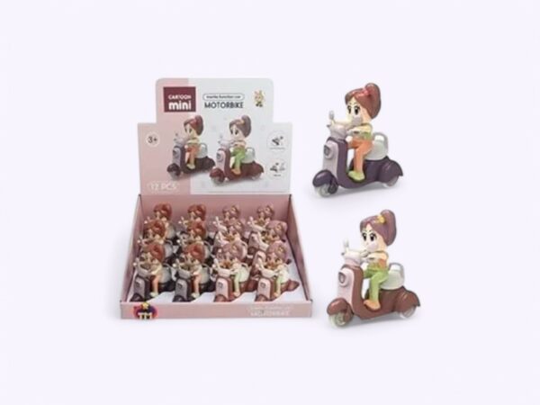 (12 pcs) Cartoon Scooter with Cute Girl Doll rider, Unbreakable Push and Go Toy