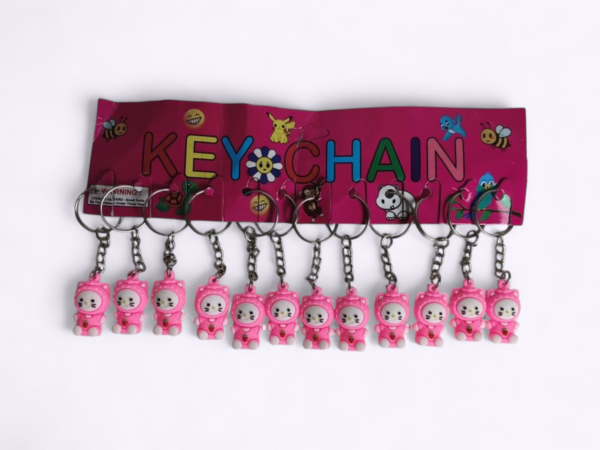 - Pack of 12 Hello Kitty-shaped keychains in multiple colours