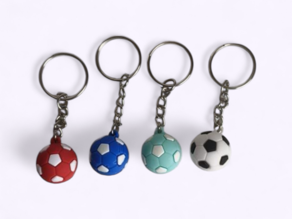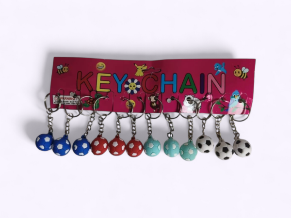 - Pack of 12 Football-shaped keychains in multiple colours