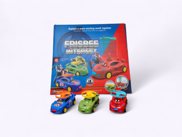 (18 Pcs/Box) Superhero Theme Frisbee Interest Cars with Launcher – Fun Action Toy