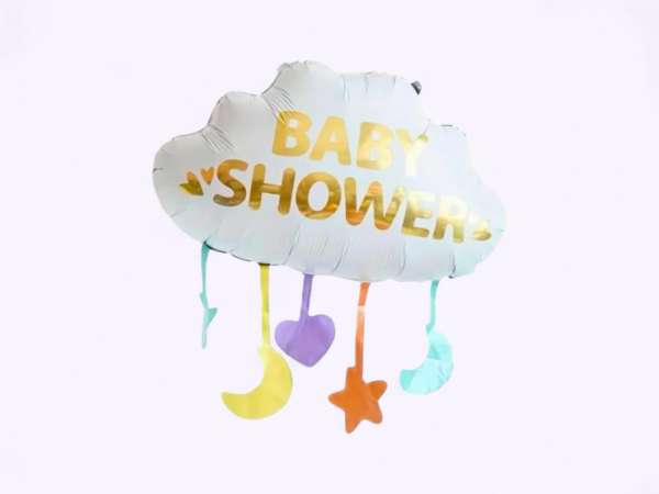 - Beautiful cloud-shaped foil balloon with “BABY SHOWER” golden text