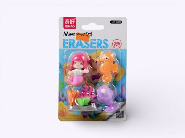 (6 Pcs Set) Mermaid Shape Erasers for Kids (8306)