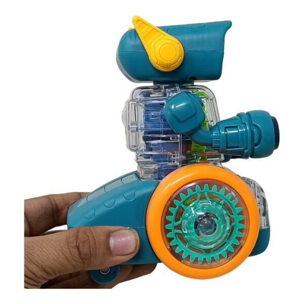 It moves in all direction and has transparent moving gears inside.