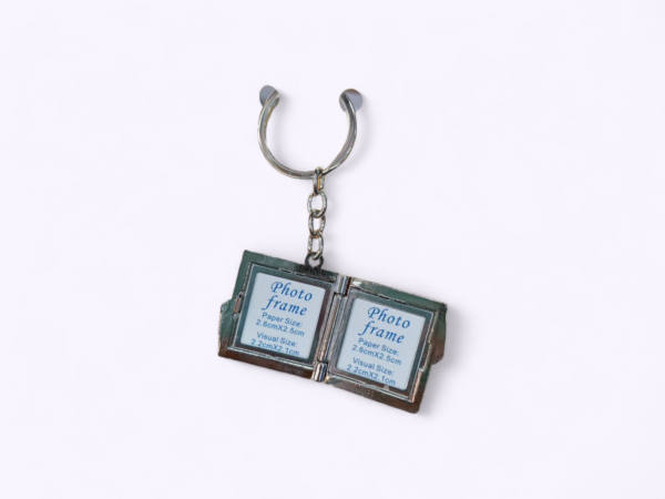 The Double Photo Frame Metallic Keyring/Keychain is a stylish and compact accessory that allows you to showcase two cherished memories simultaneously. Crafted with durable metallic materials, it combines practicality with sentimental value, making it an ideal way to carry your favorite photos wherever you go.