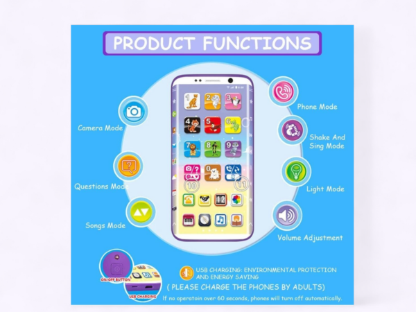 Educational Smart Phone for Kids with Light, Music and Talking Function