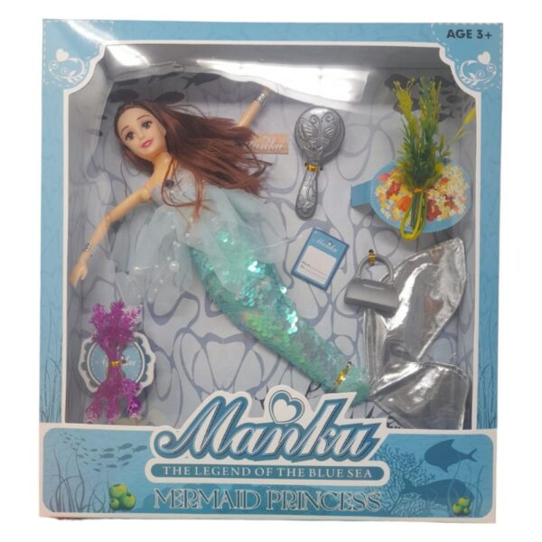 - The MT-1007 Mermaid Doll by Manku combines enchanting design with quality craftsmanship, making it an attractive option for retailers in the children’s entertainment and toy markets. The vibrant mermaid features and eye-catching box add appeal for both play and display. This doll is perfect for shopkeepers looking to offer innovative and captivating toys, aligning with current trends in imaginative play and collectible items in India’s wholesale market.