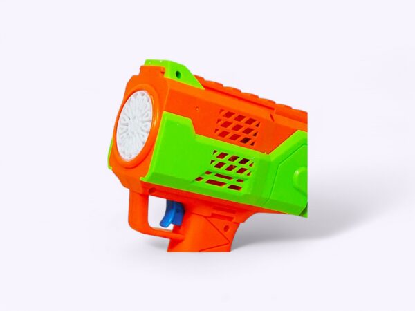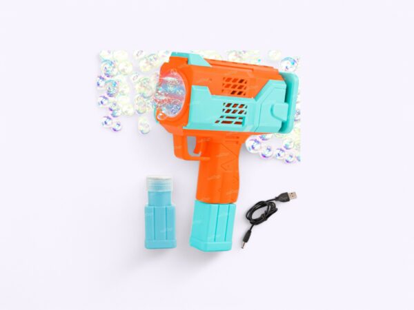 Your inner child with this vibrant bubble-blasting toy gun! Crafted from durable plastic, it features a striking orange and turquoise design that’s sure to catch everyone’s eye. Simply load the colourful bubble solution containers into the gun’s chambers, connect the USB charging cable, and get ready for endless fun.