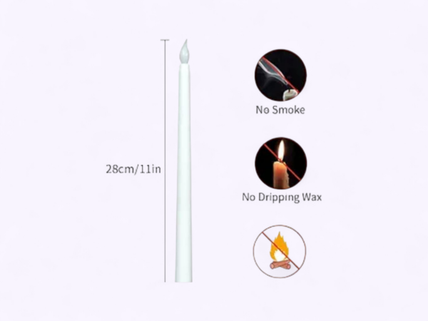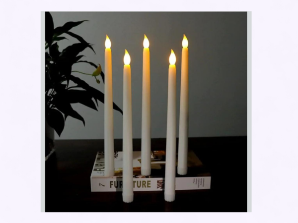 - Set of elegant taper candles with realistic warm LED flame