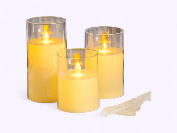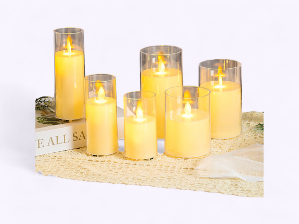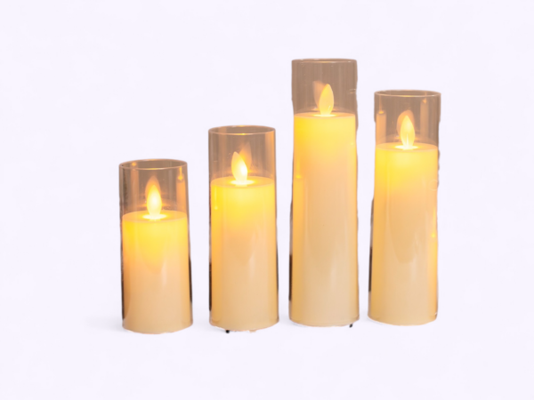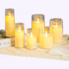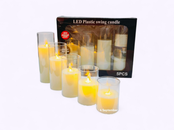 - Set of 5 LED swing candles with transparent glass holders
