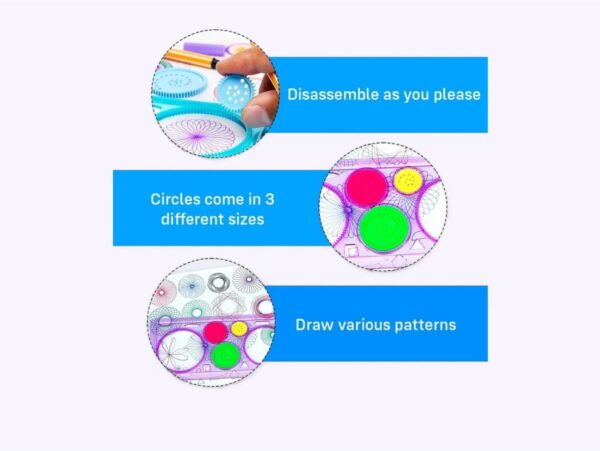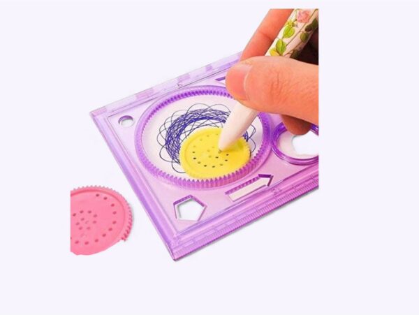 Includes rotating gears and pattern tools for creating unique designs